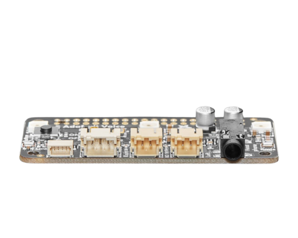 The on-board WM8960 codec uses I2S digital audio for great quality recording and playback – so it sounds a lot better than the headphone jack on the Pi (or the no-headphone jack on a Pi Zero). We put ferrite beads and filter capacitors on every input and output to get the best possible performance, and all at a great price.