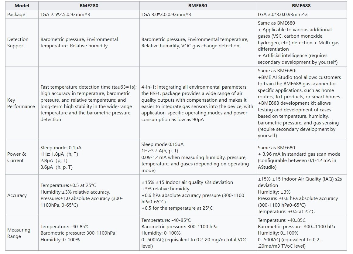 In addition, the BME688 comes with an onboard gas sensor and supports Bosch’s AI algorithm for enhanced gas detection accuracy. This makes it suitable for detecting pollution, smoke, or chemical leaks in residential or industrial setups.