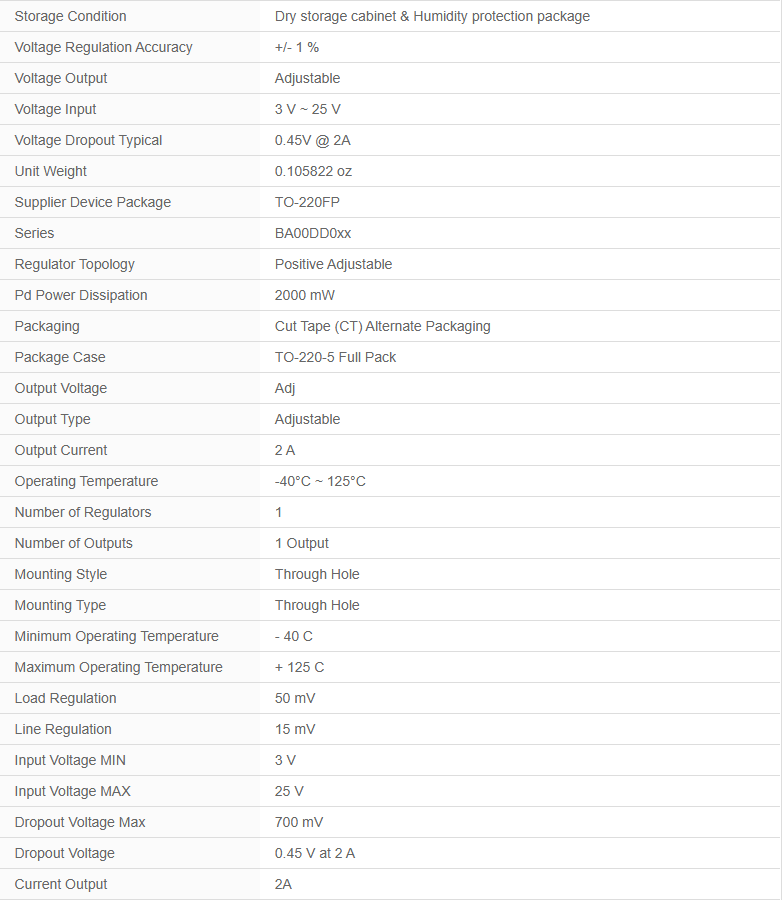 - 1 x Linear Voltage Regulator Variable BA00DD0WCP-V5E2 TO-220