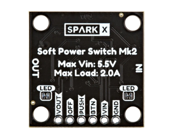- The Soft Power Switch – JST 2mm works up to 5.5V only. (Mk1 is good up to 12V.)
