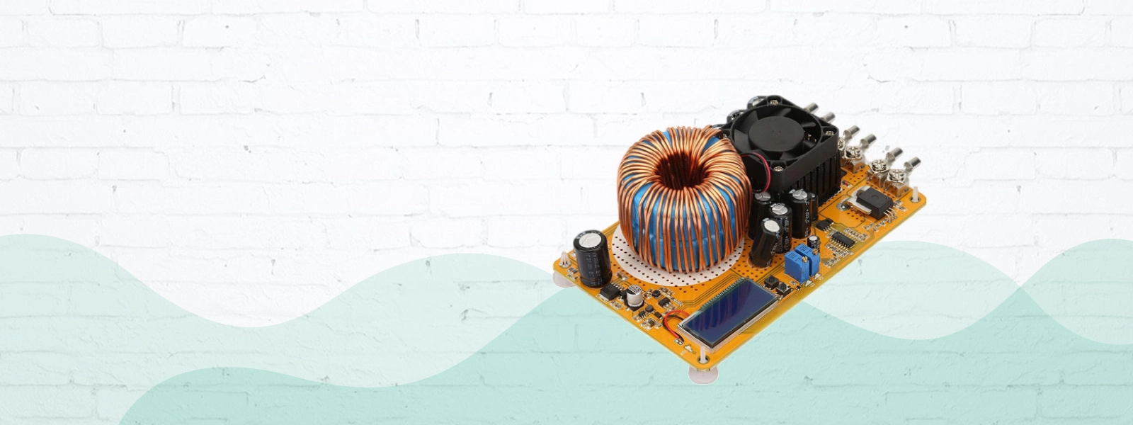 High-power Buck converter with heatsink and fan.